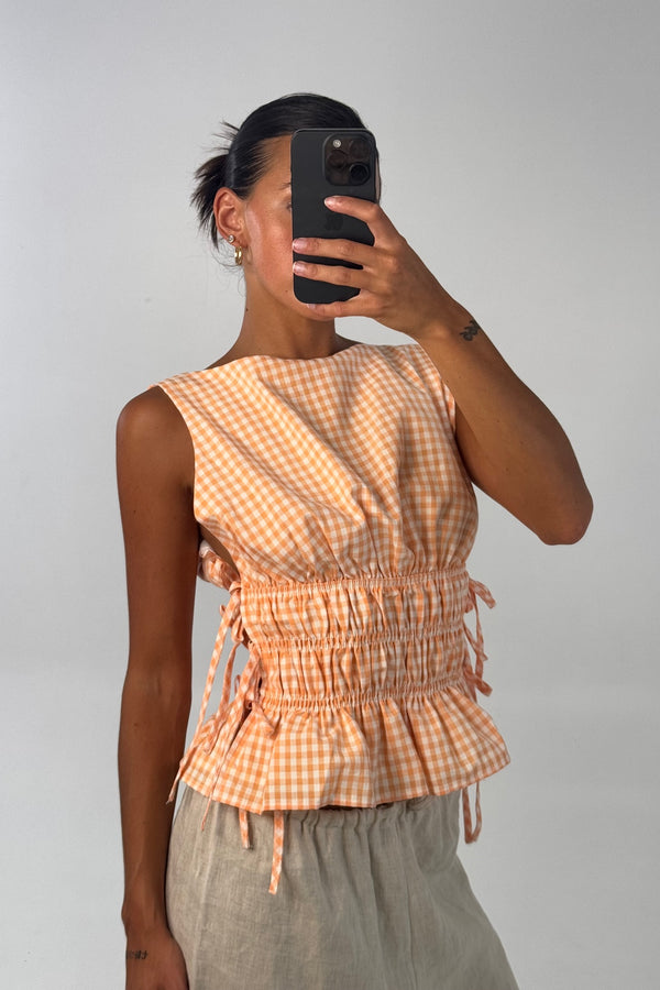 Miranda Gingham Top Orange - FINAL SALE