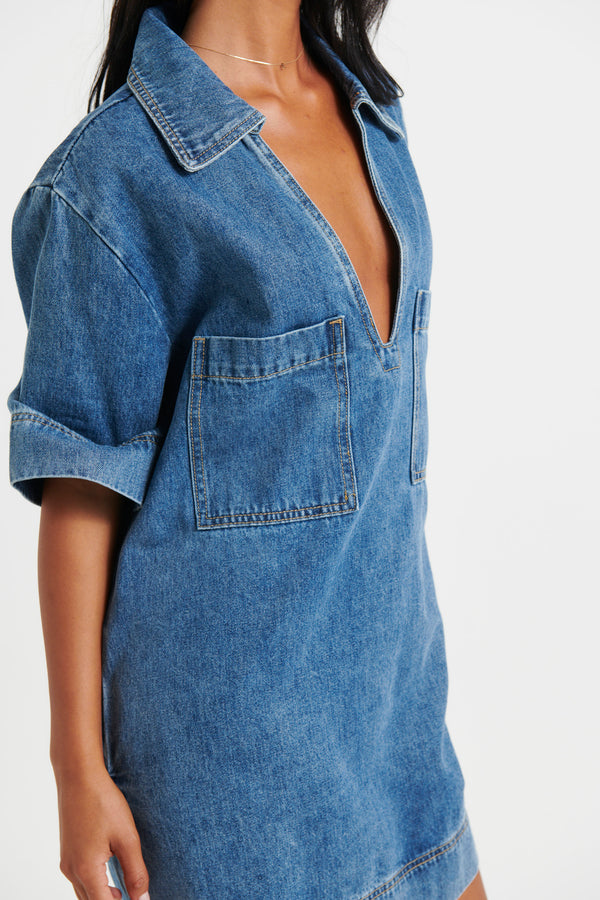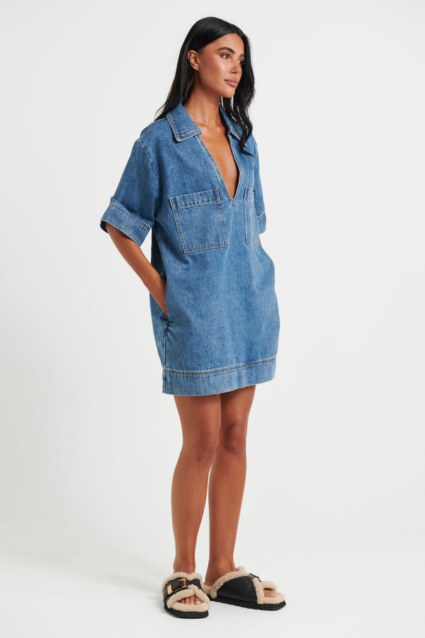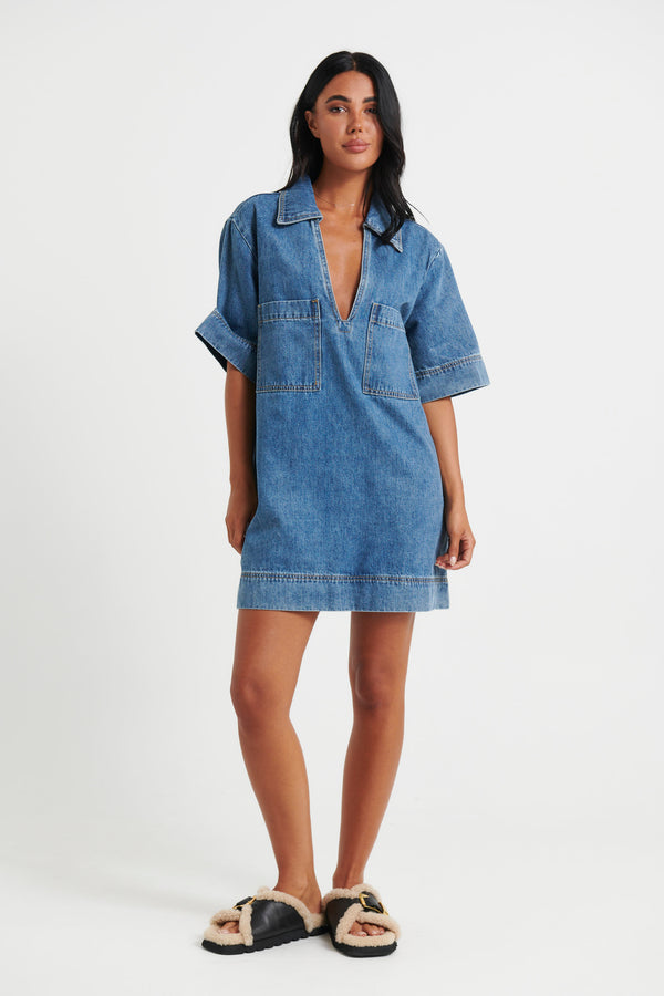 Rhythm Mini Denim Dress Indigo - FINAL SALE