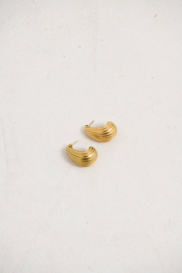 Ridged Teardrop Earrings Gold