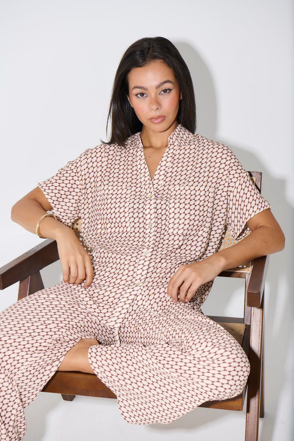 Riley Resort Shirt Brown Print - FINAL SALE