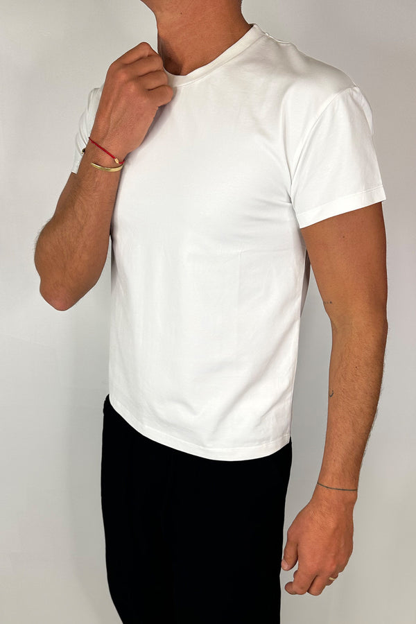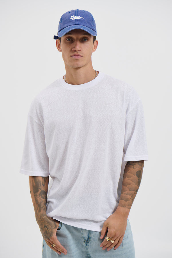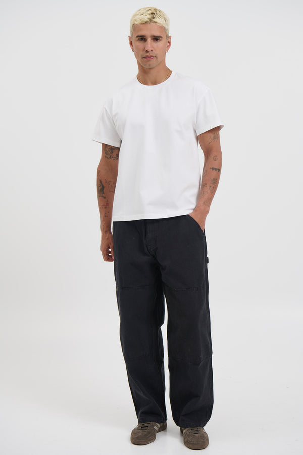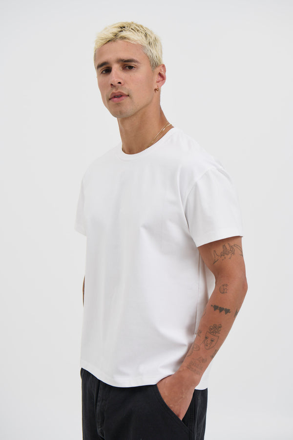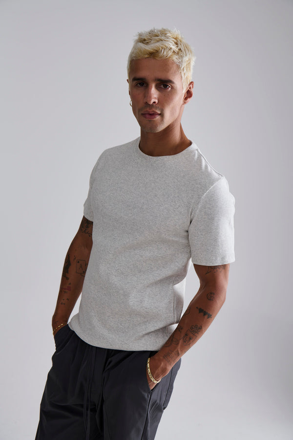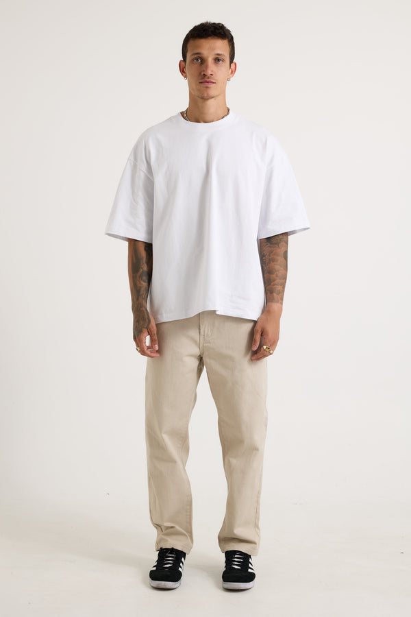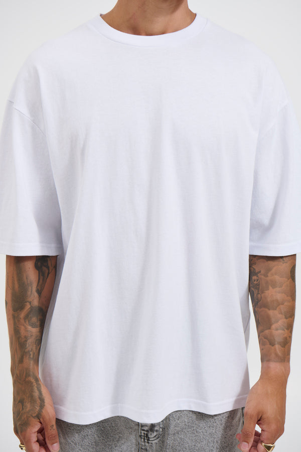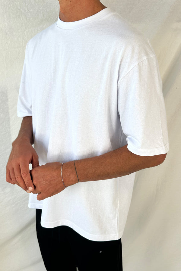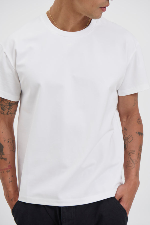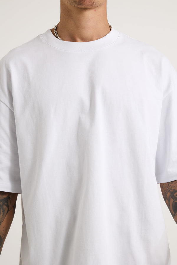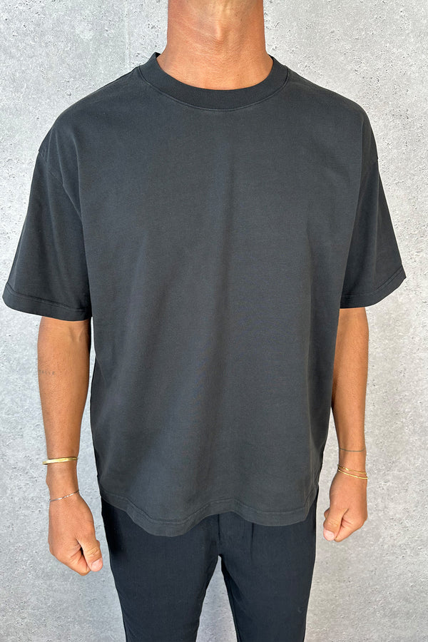 Our signature heavyweight tee is composed from 100% cotton, ribbed crew neck and drop sleeves.