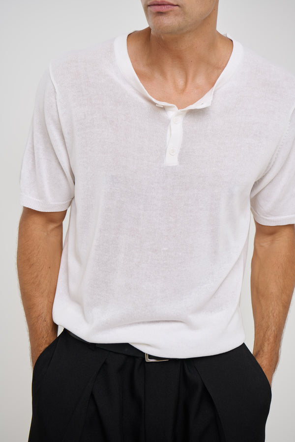 Knitted Henley Tee White