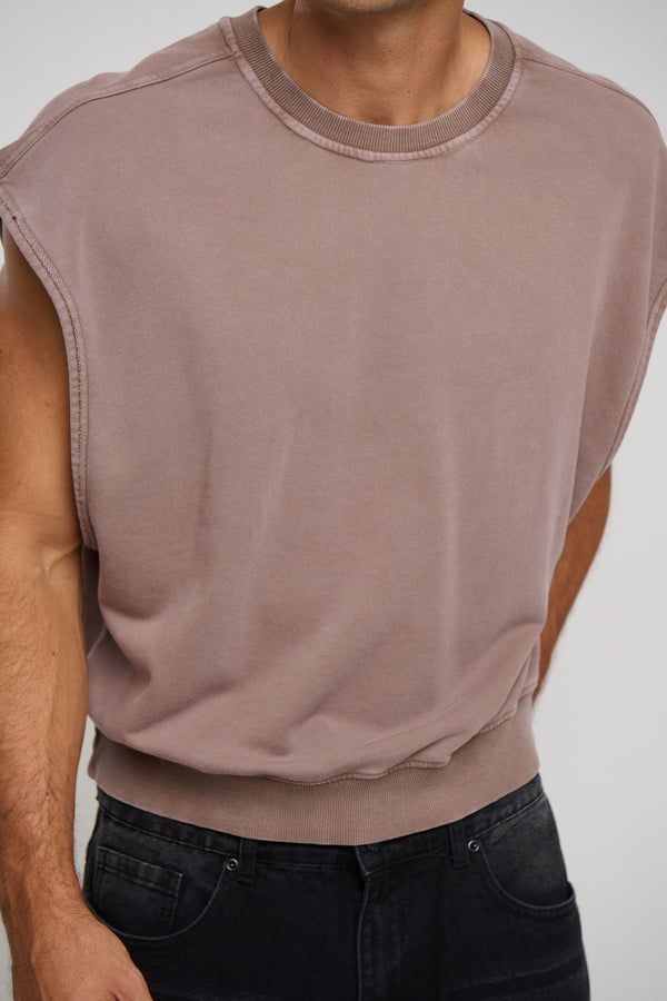 Cropped Fleece Ribbed Tank Choc