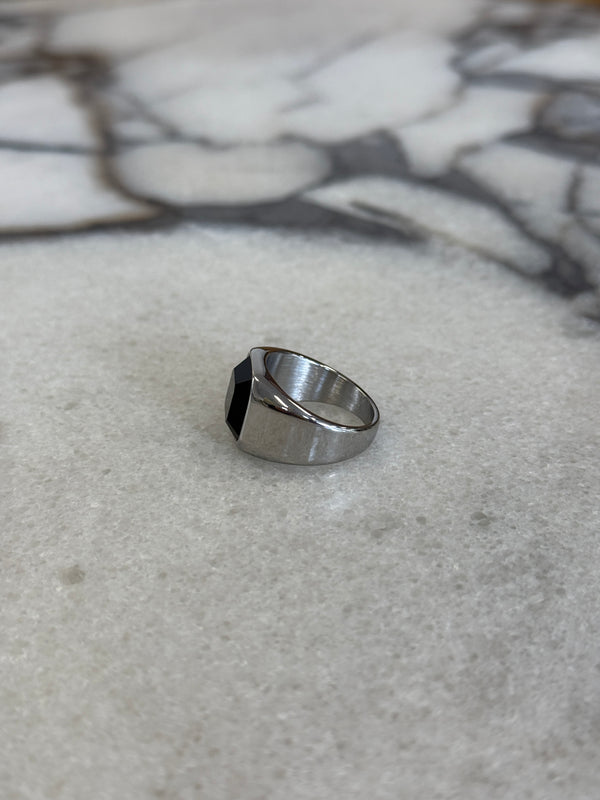 Stone Signet Ring Black/Silver