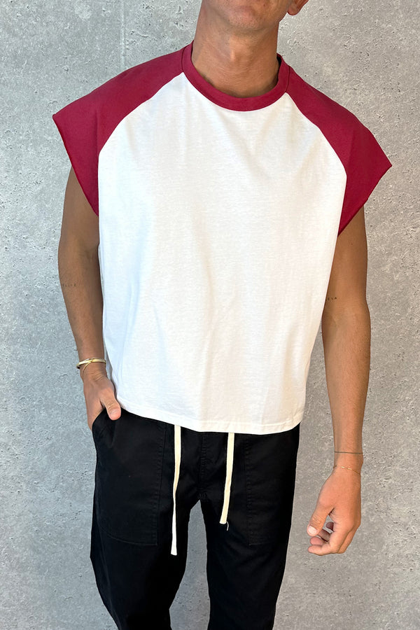 Raglan Crop Box Tank Crimson - FINAL SALE