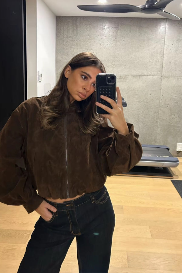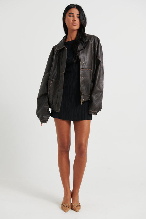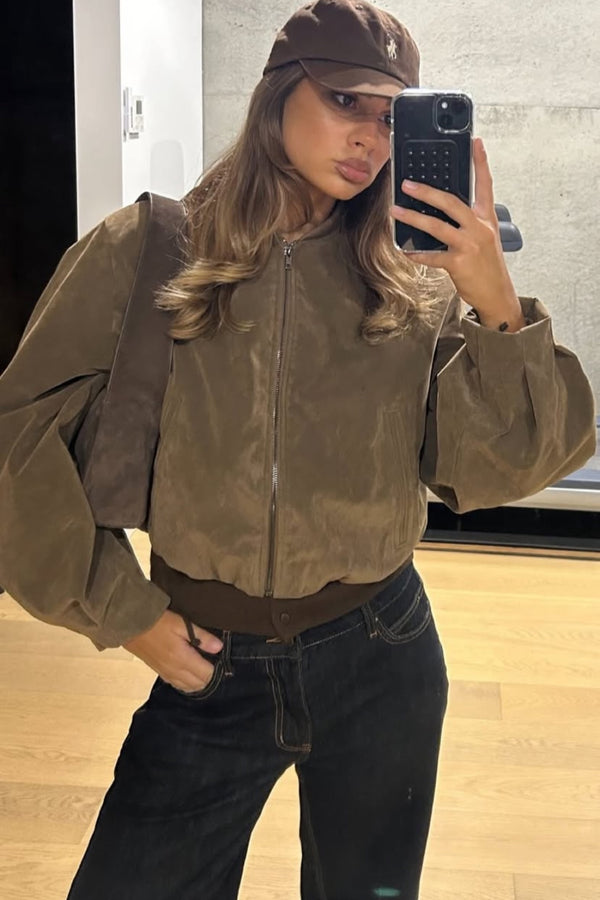 Jorja Bomber Jacket Vintage Charcoal Brown