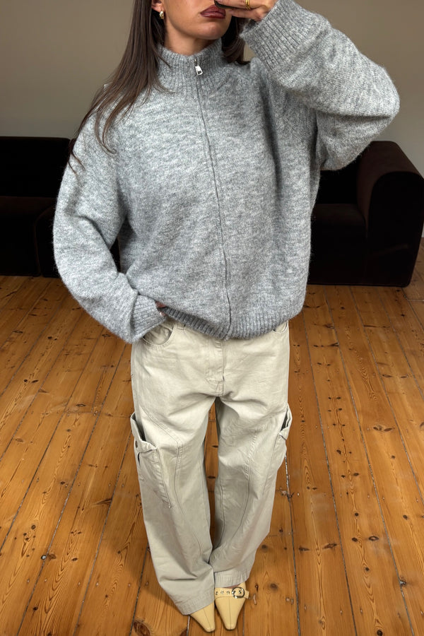 Tyla Zip Up Knit Grey