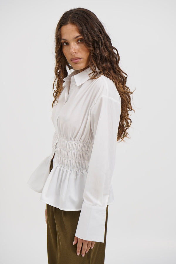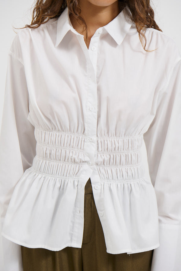 - Classic with a Twist: Our crisp white women's shirts get a modern update with a statement sleeve. Pair with tailored trousers or tuck it into boyfriend jeans for a touch of effortless style.