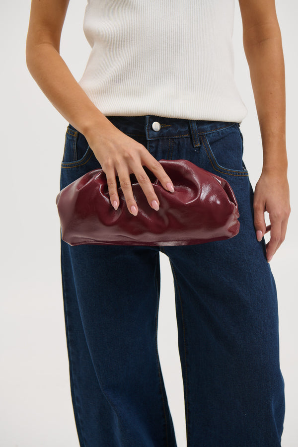 The Kyla Clutch Bag Cherry Crinkle Patent