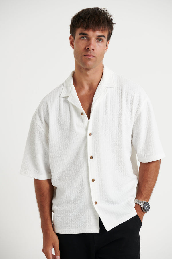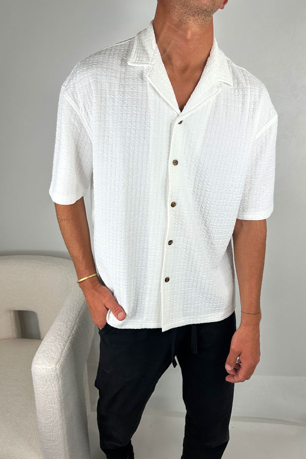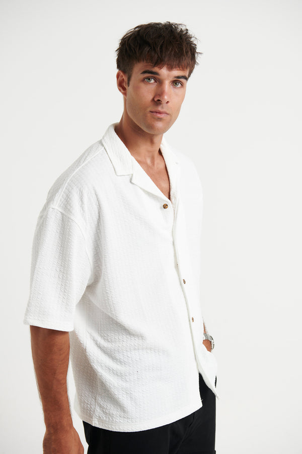Raf Cropped Shirt Square Texture White