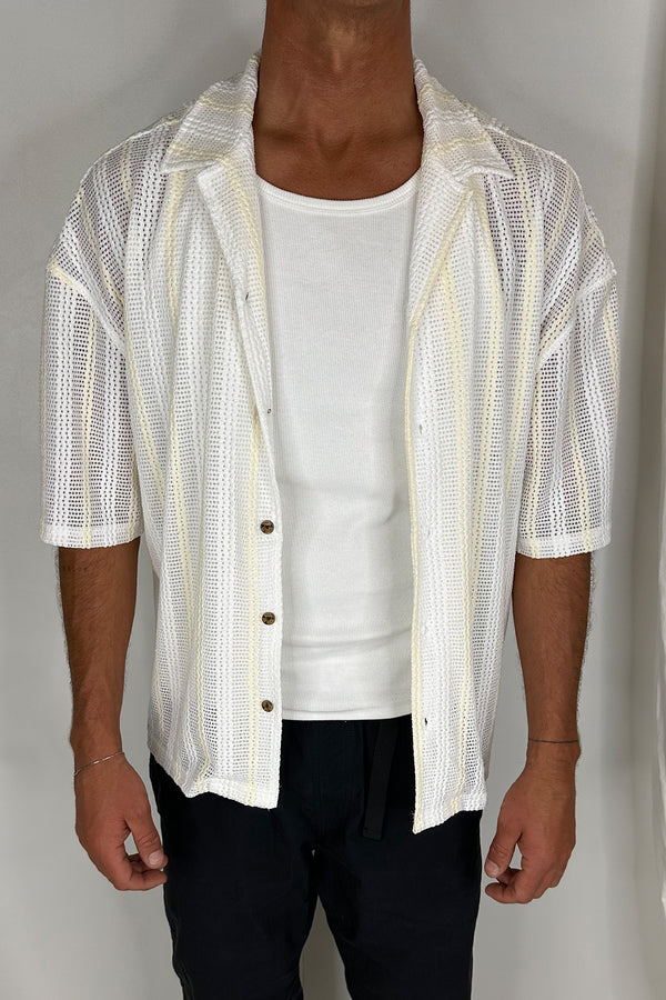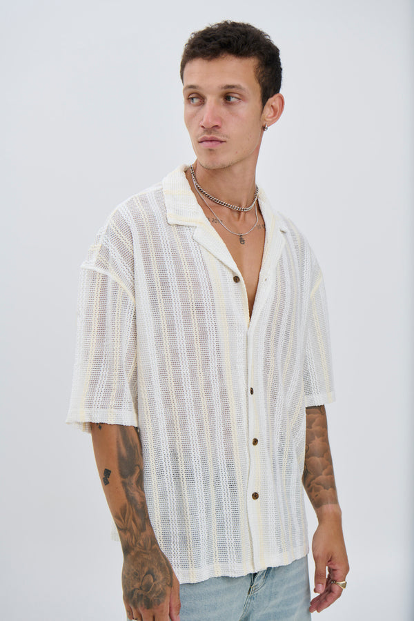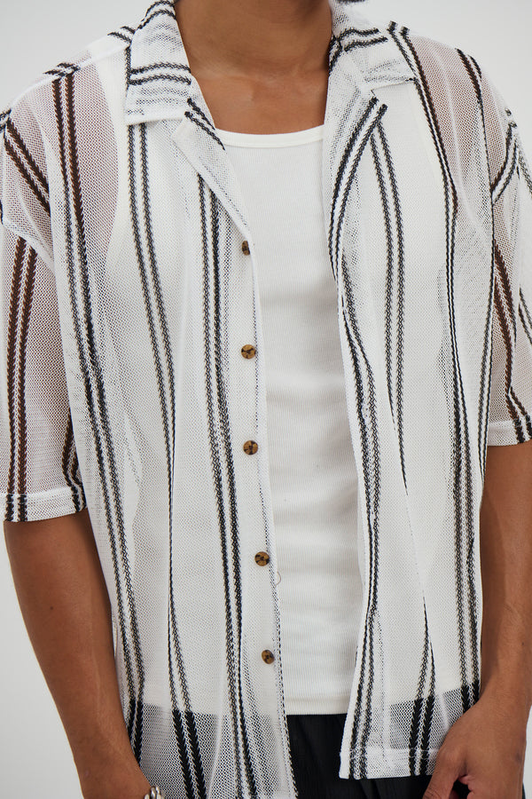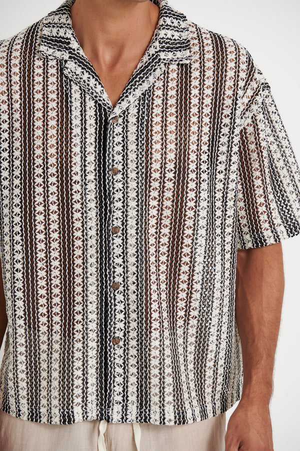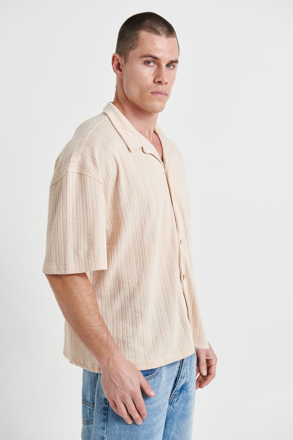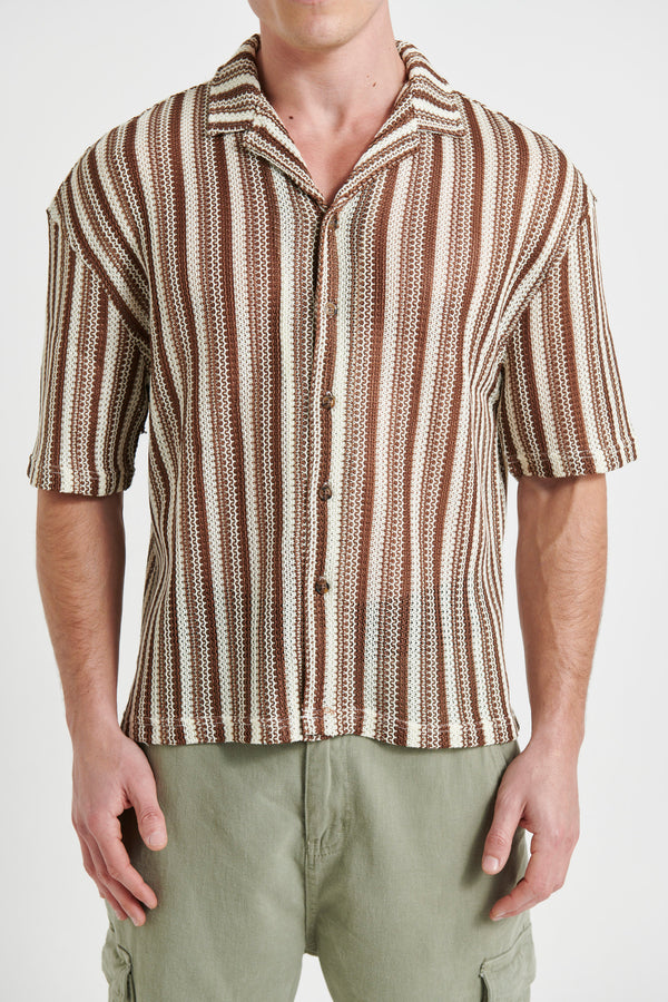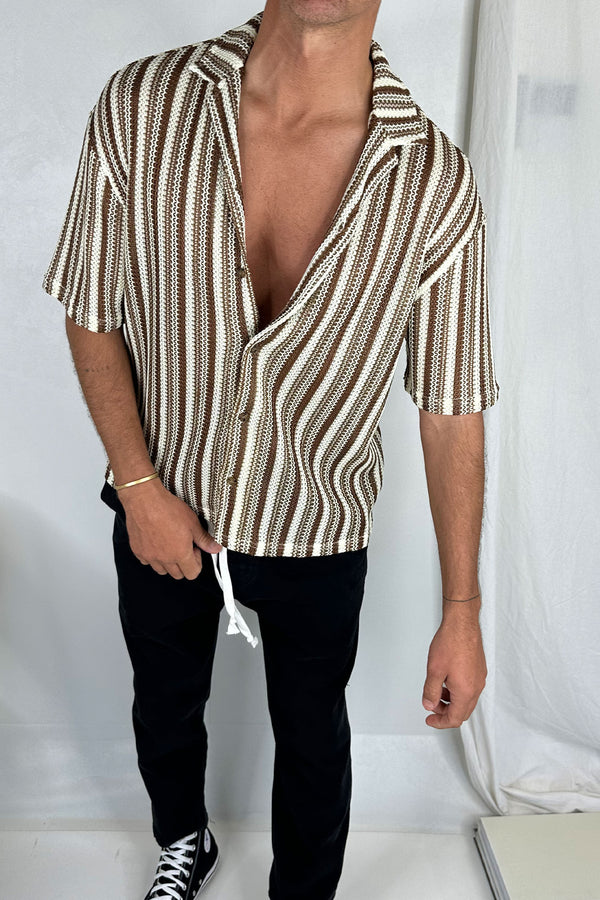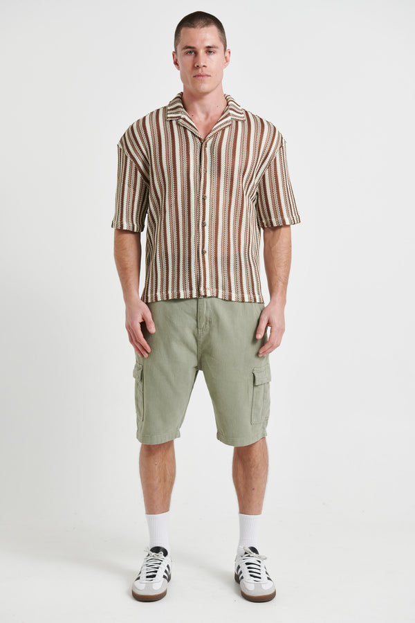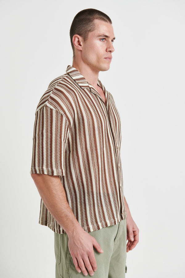 Raf Cropped Shirt Stripe Crochet Tan
