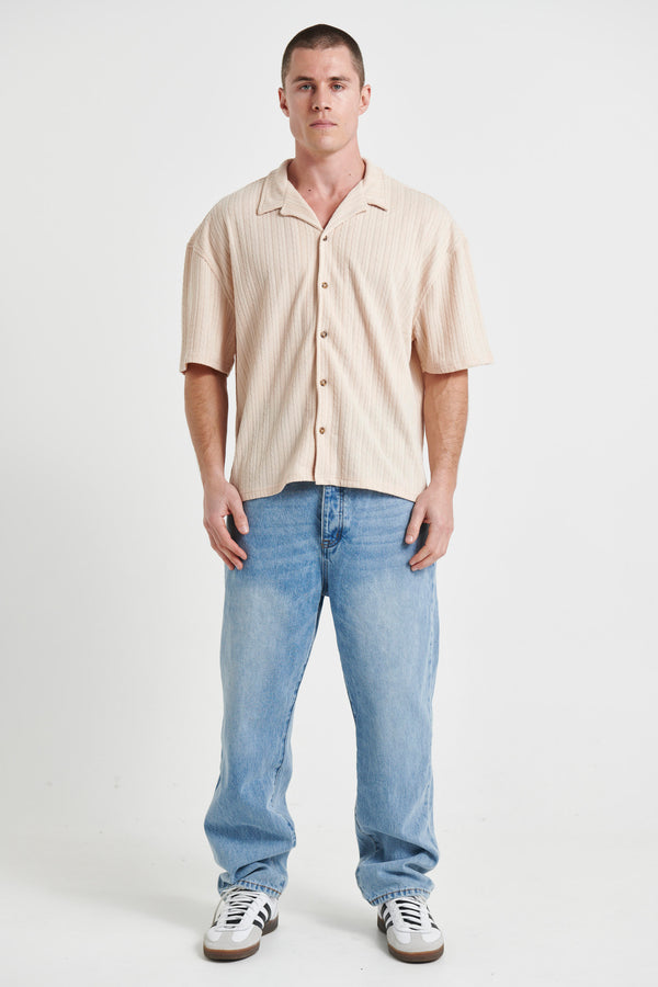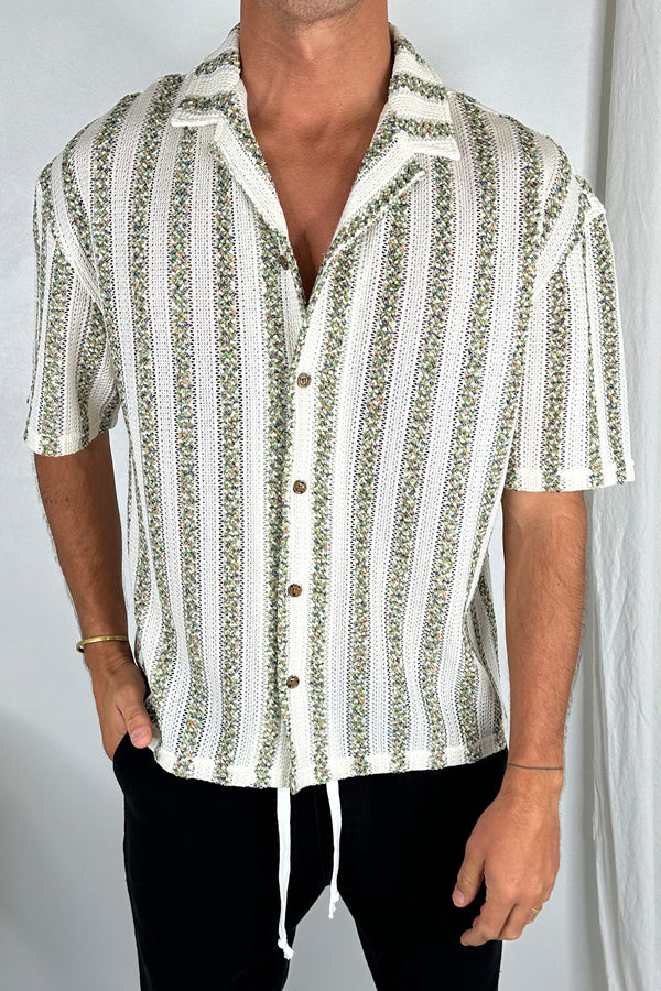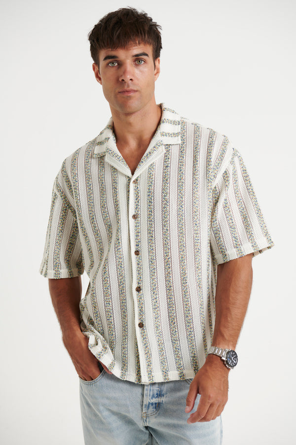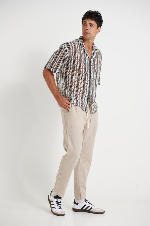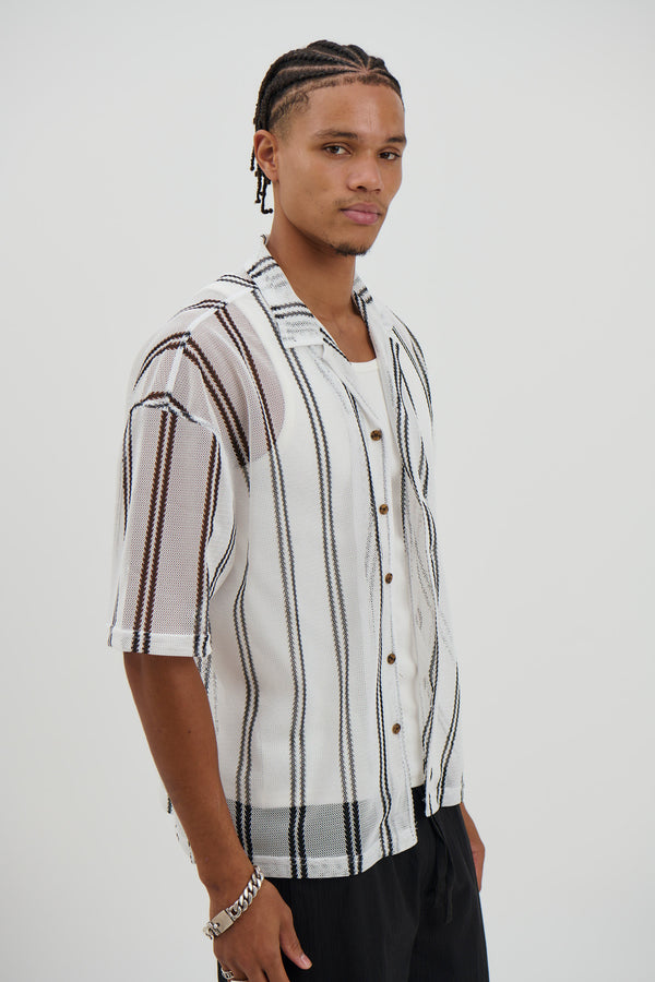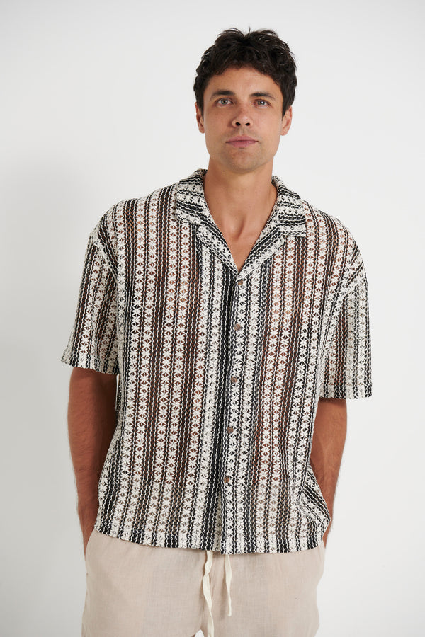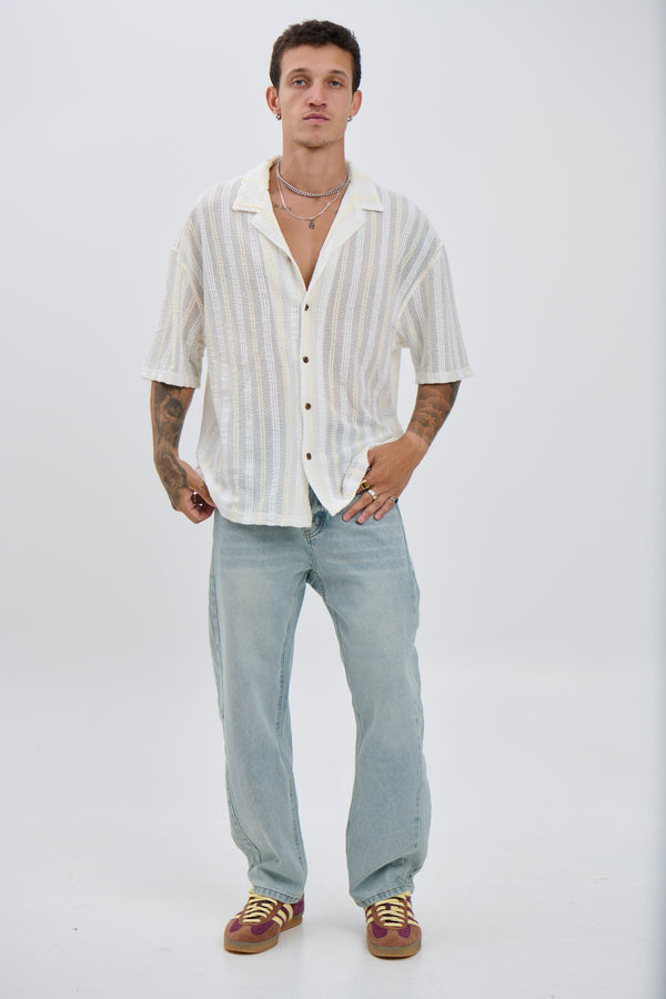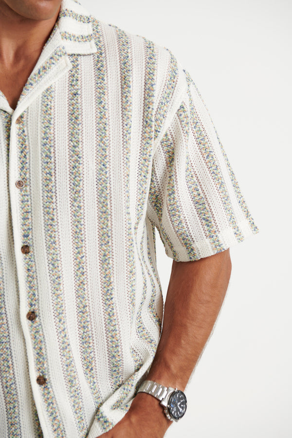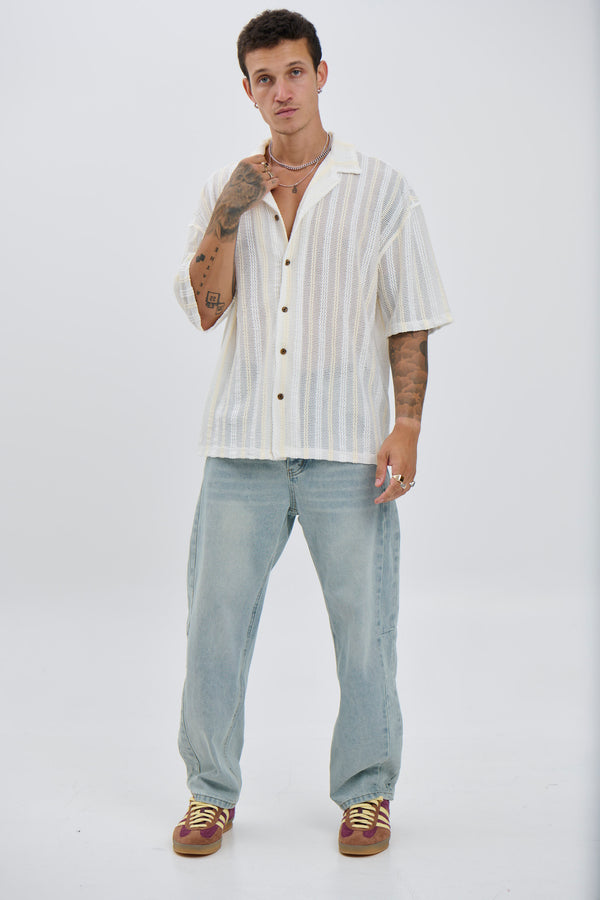 Raf Cropped Shirt Stripe Crochet Tan
