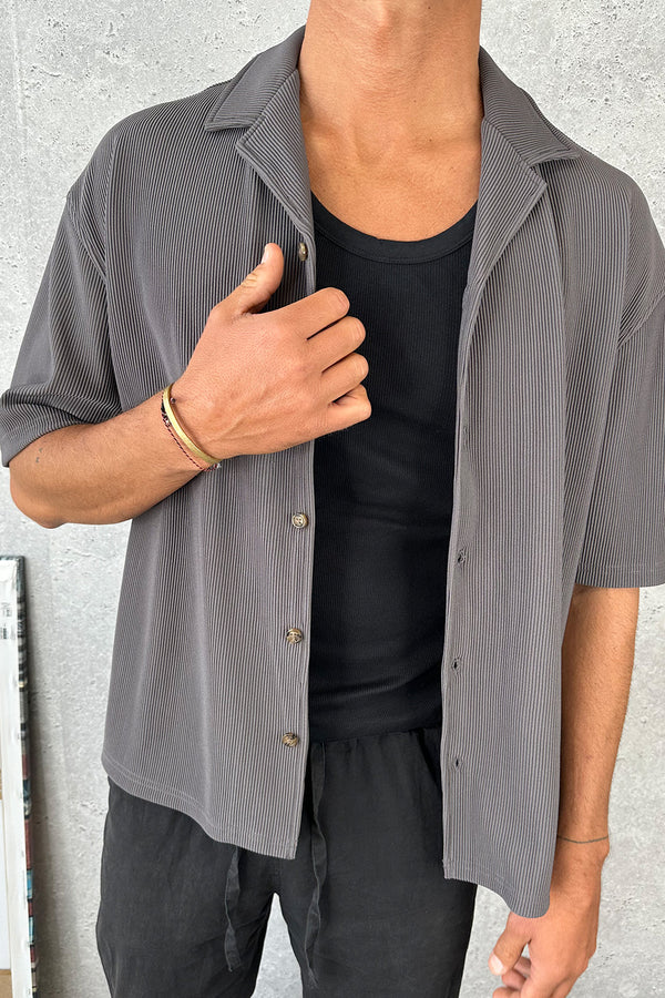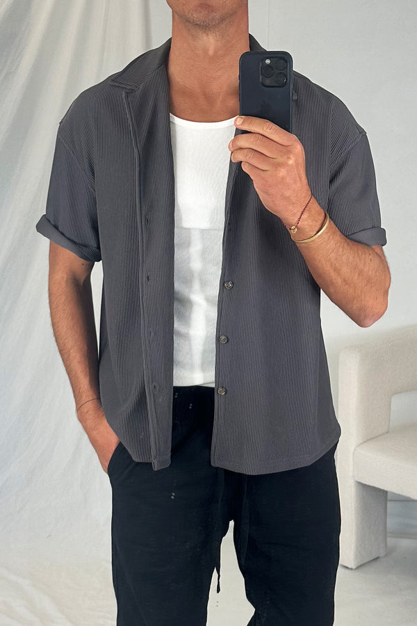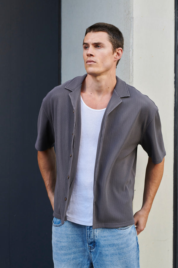 Raf Cropped Shirt Ribbed Dark Grey