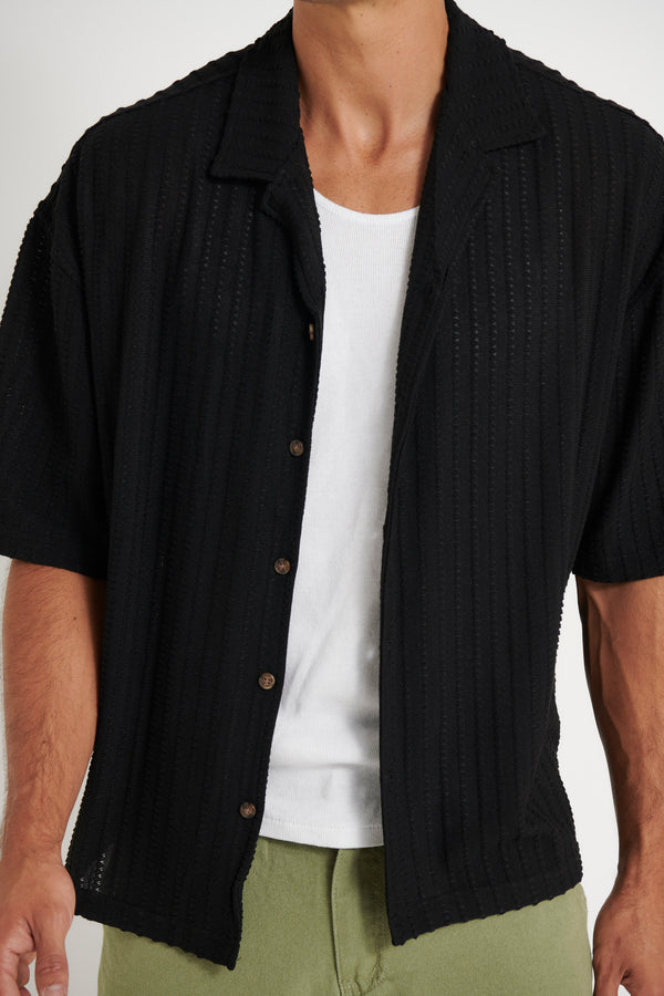 Raf Cropped Shirt Knit Stripe Black