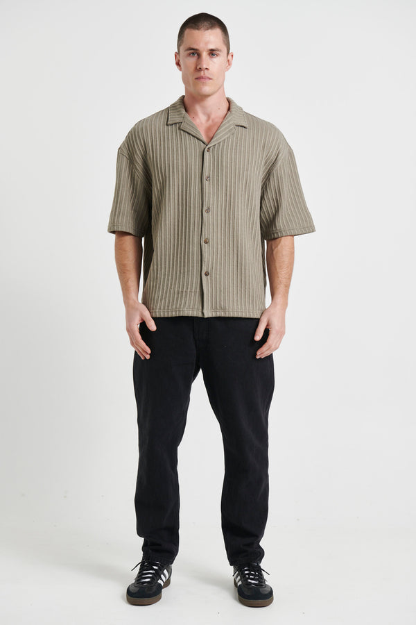 Raf Cropped Shirt Rib Knit Khaki