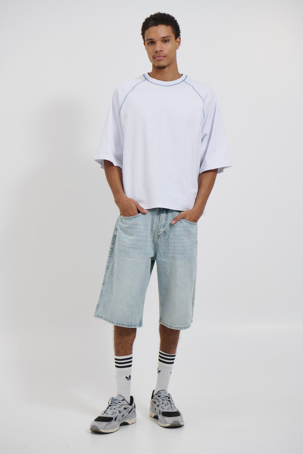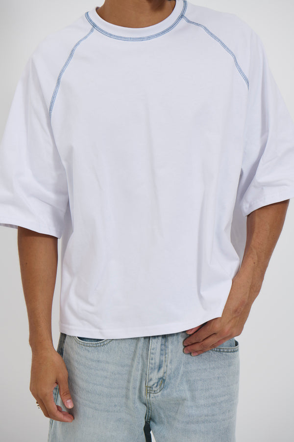 Contrast Stitch Raglan Tee White