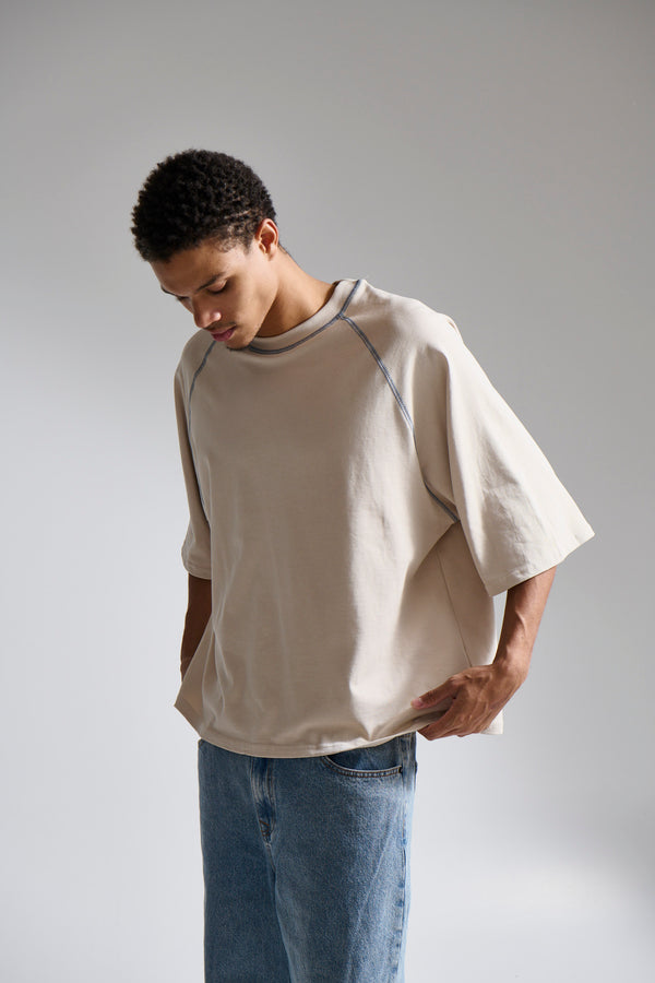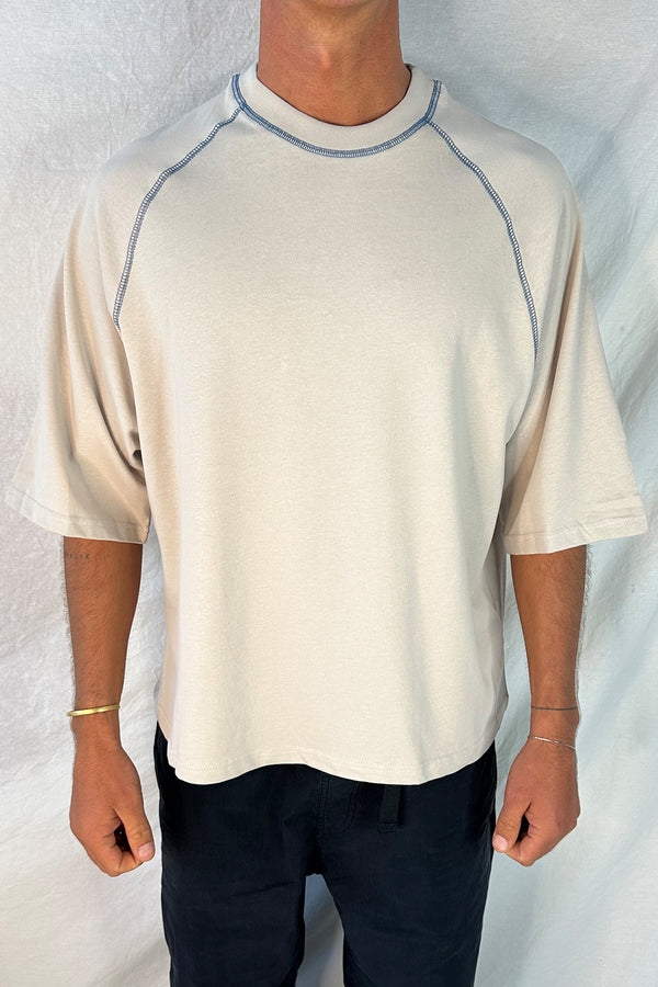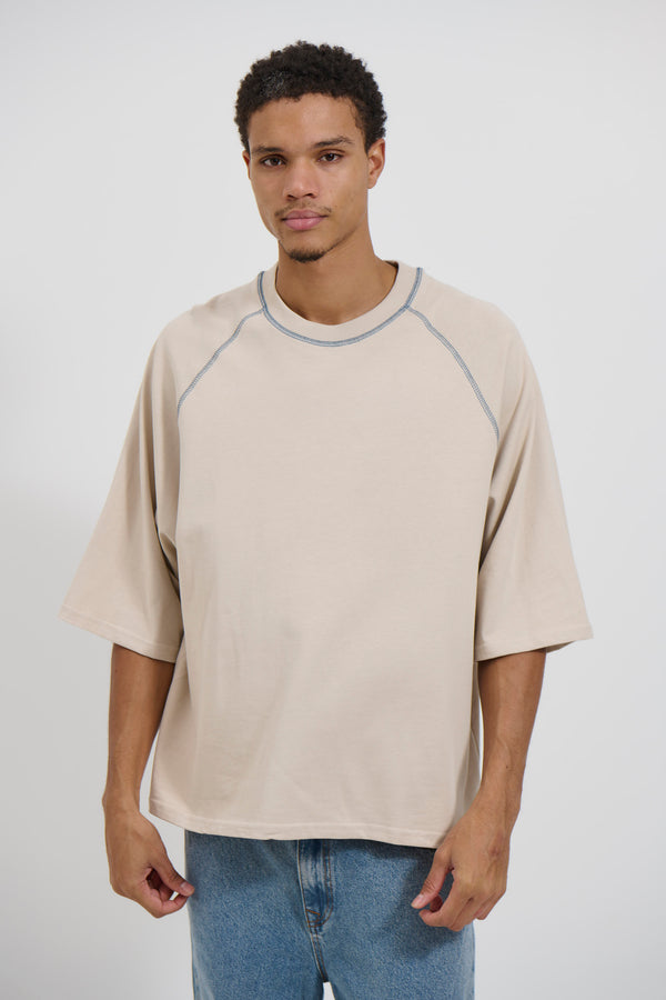 Contrast Stitch Raglan Tee Stone - FINAL SALE