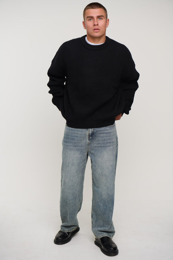 Drop Sleeve Heavy Knit Black