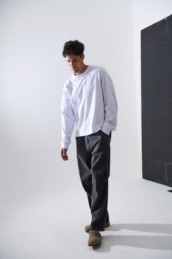 Our signature heavyweight tee is composed from 100% cotton, ribbed crew neck and drop sleeves.