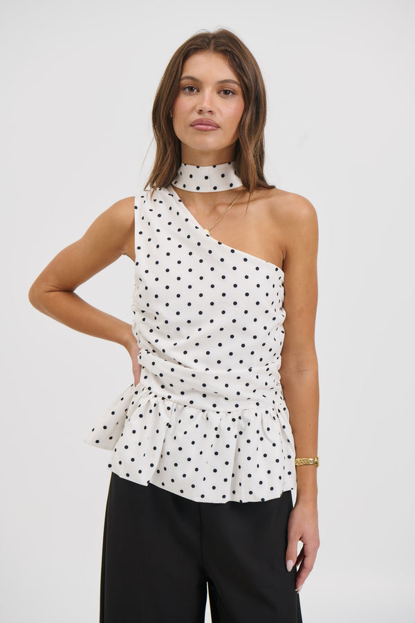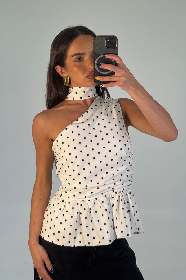 Sweetheart Mini Dress Cream Polka