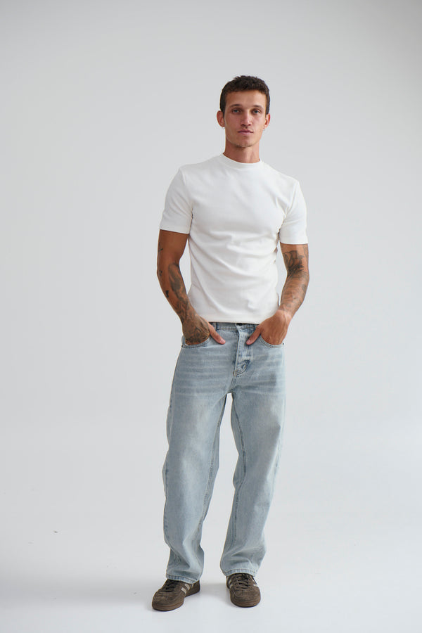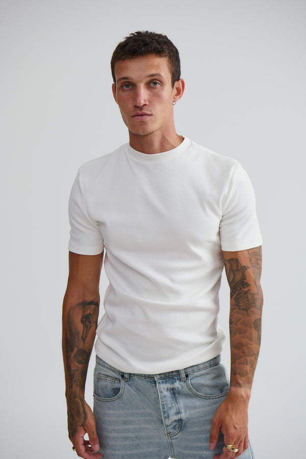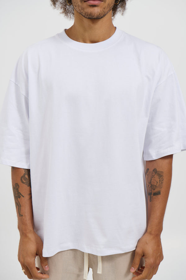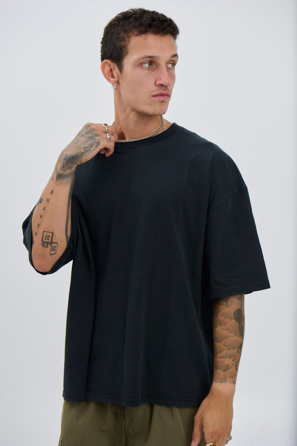 Our signature heavyweight tee is composed from 100% cotton, ribbed crew neck and drop sleeves.