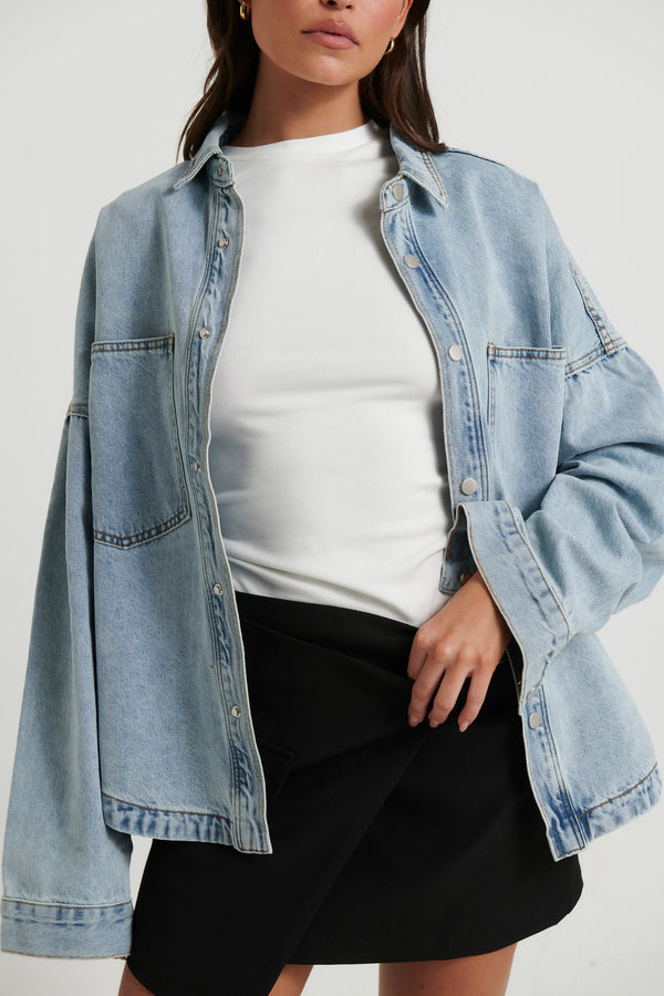 Unisex Drop Shoulder Denim Shirt OceanUnisex Drop Shoulder Denim Shirt Ocean Unisex Drop Shoulder Denim Shirt Ocean