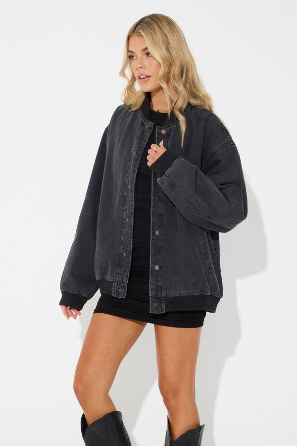 Unisex Vintage Bomber Denim Jacket BlackUnisex Vintage Bomber Denim Jacket Black Unisex Vintage Bomber Denim Jacket Black
