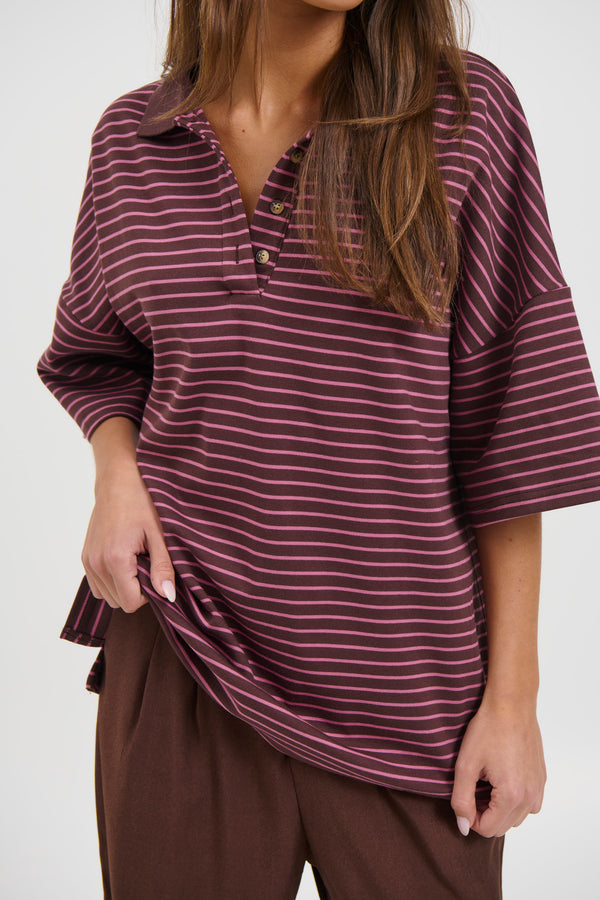 Unisex Lesley Stripe Crew Tee Choc