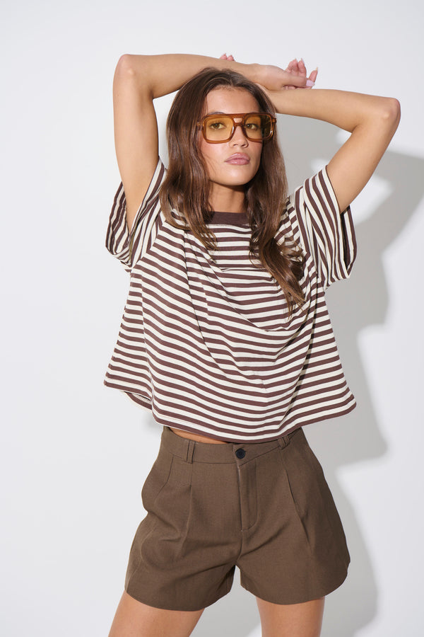 Unisex Lesley Stripe Crew Tee Milk Chocolate