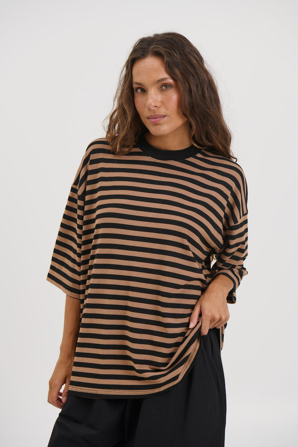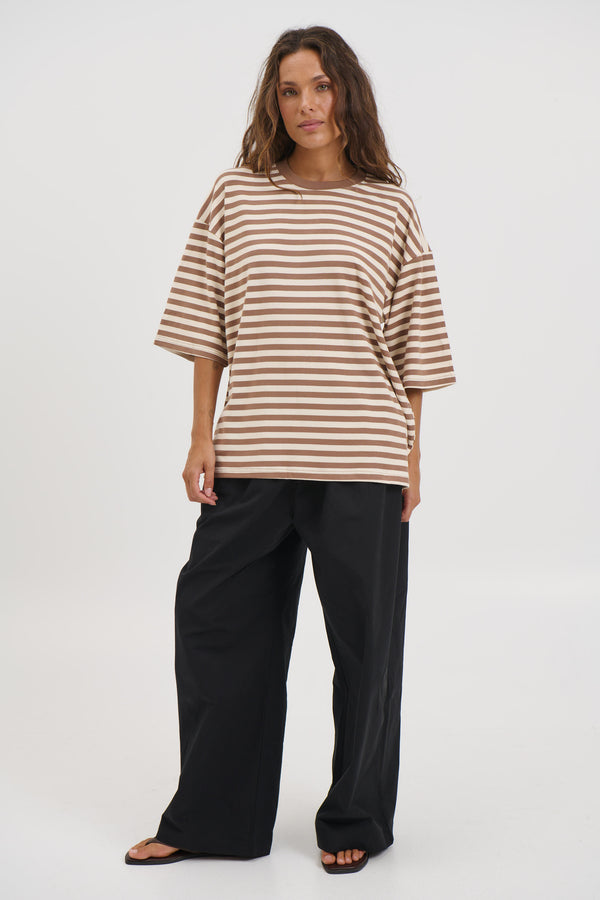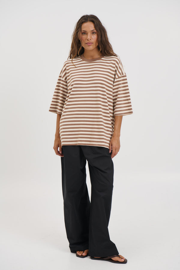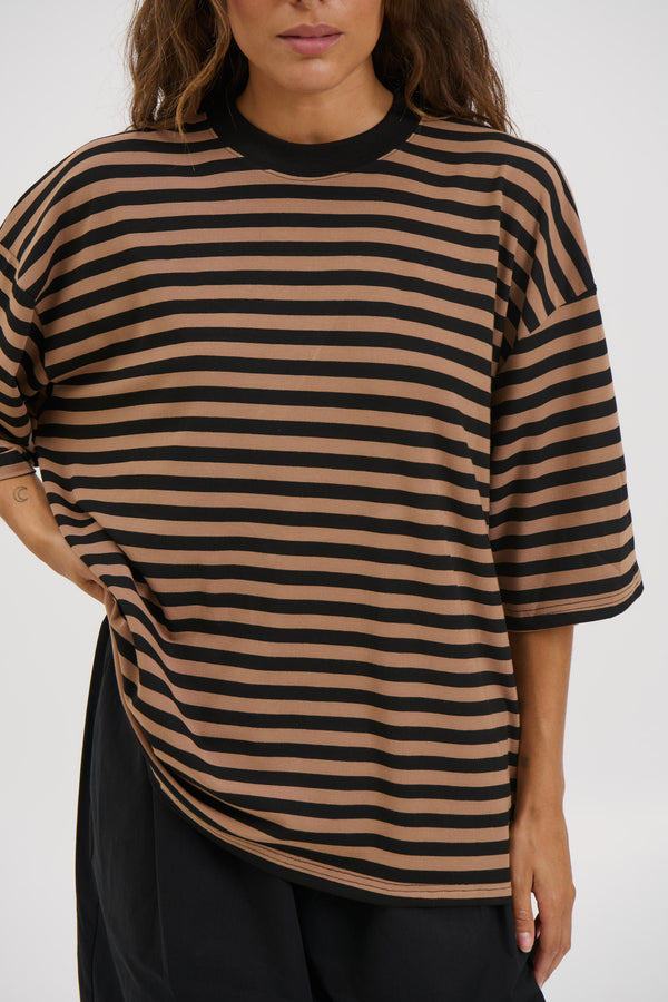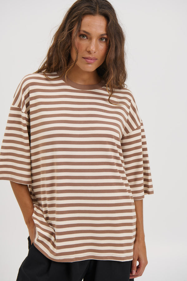 Unisex Lesley Stripe Crew Tee Mocha