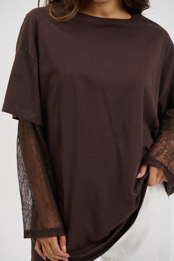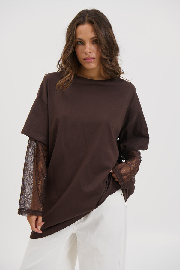 Amanda Lace Tee Dark Chocolate