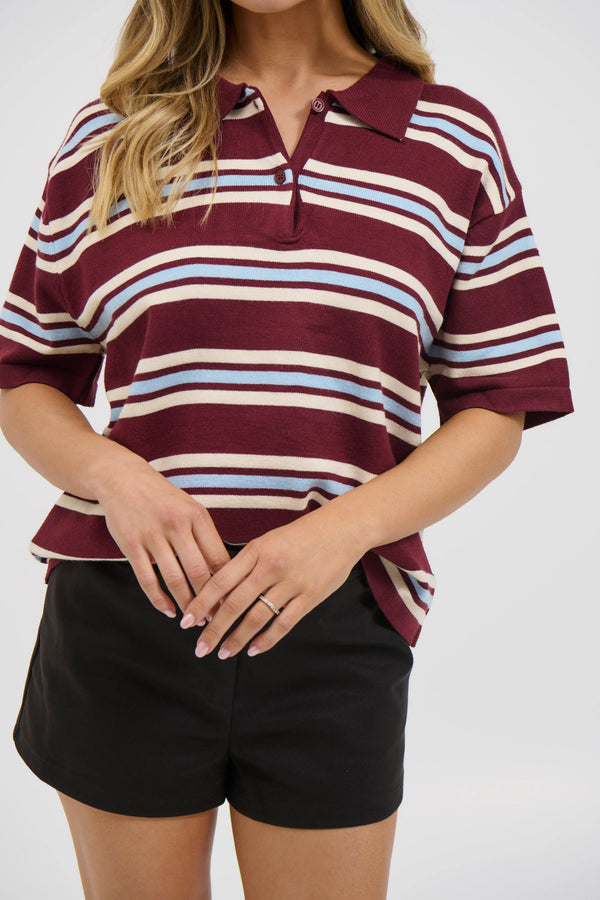 Lynal Short Sleeve Rugby Top Wine - FINAL SALE
