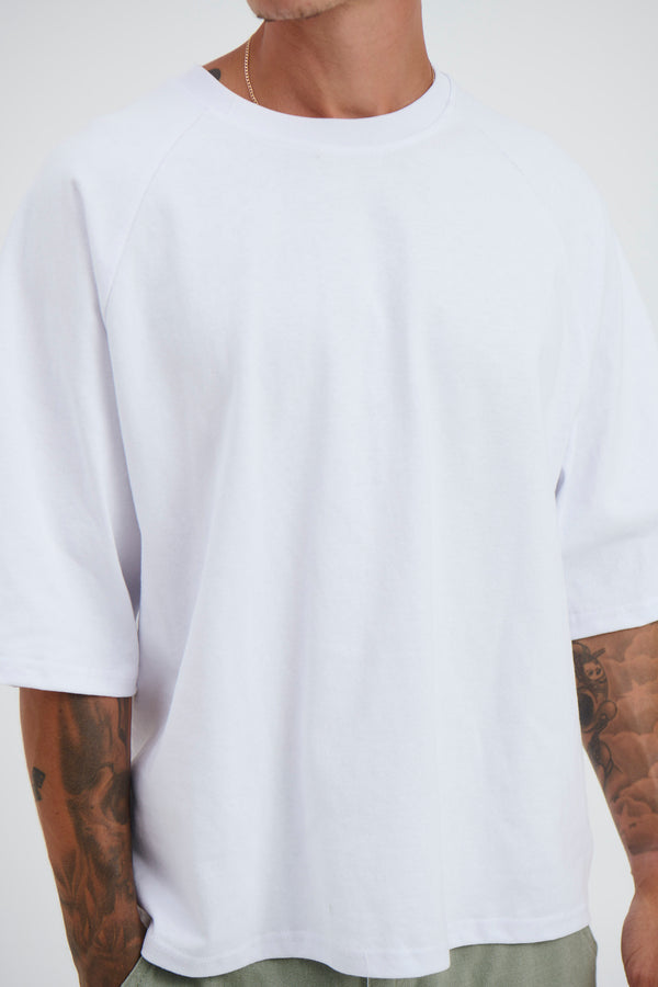 Raglan Crew Tee White - FINAL SALE