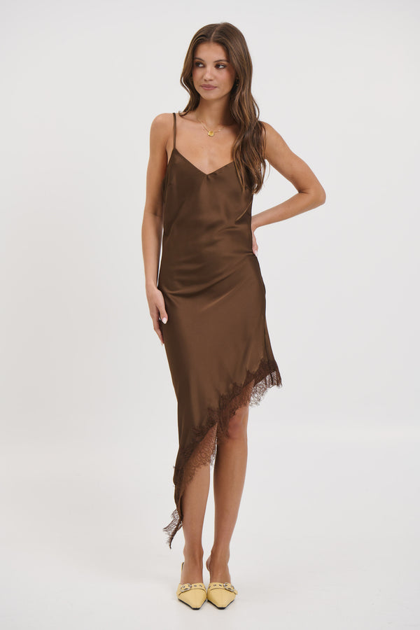 Margot Satin Lace Dress ChocolateMargot Satin Lace Dress Chocolate Margot Satin Lace Dress Chocolate