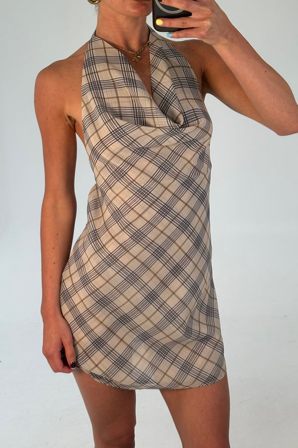 Banks Halter Mini Dress Beige PlaidBanks Halter Mini Dress Beige Plaid Banks Halter Mini Dress Beige Plaid