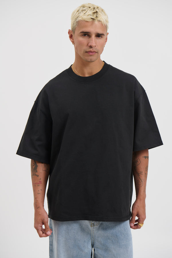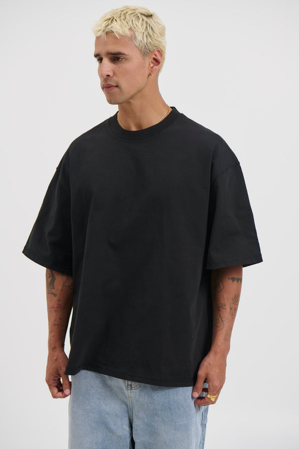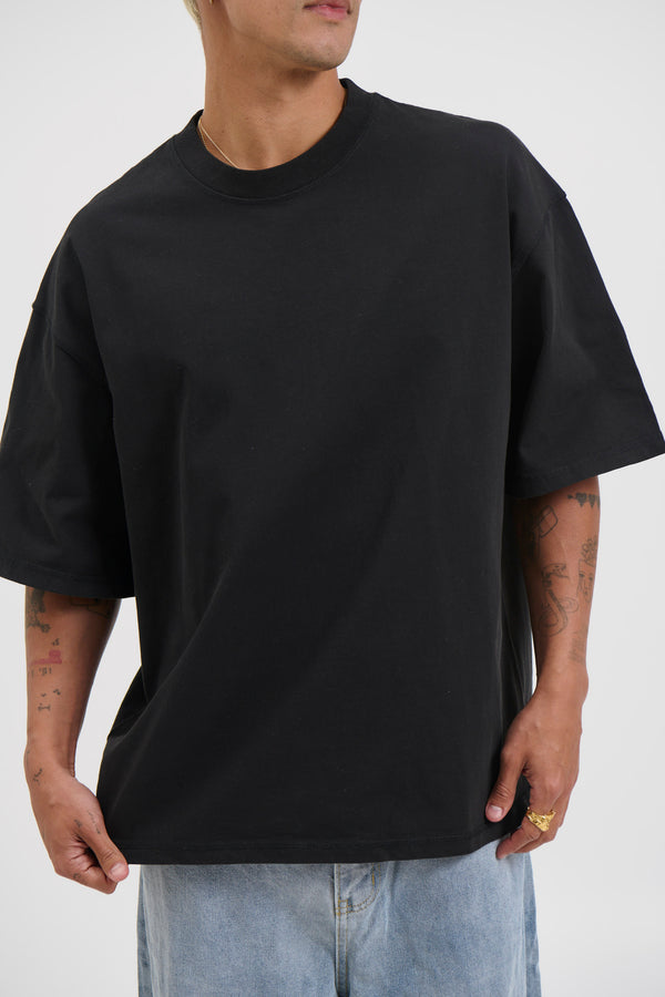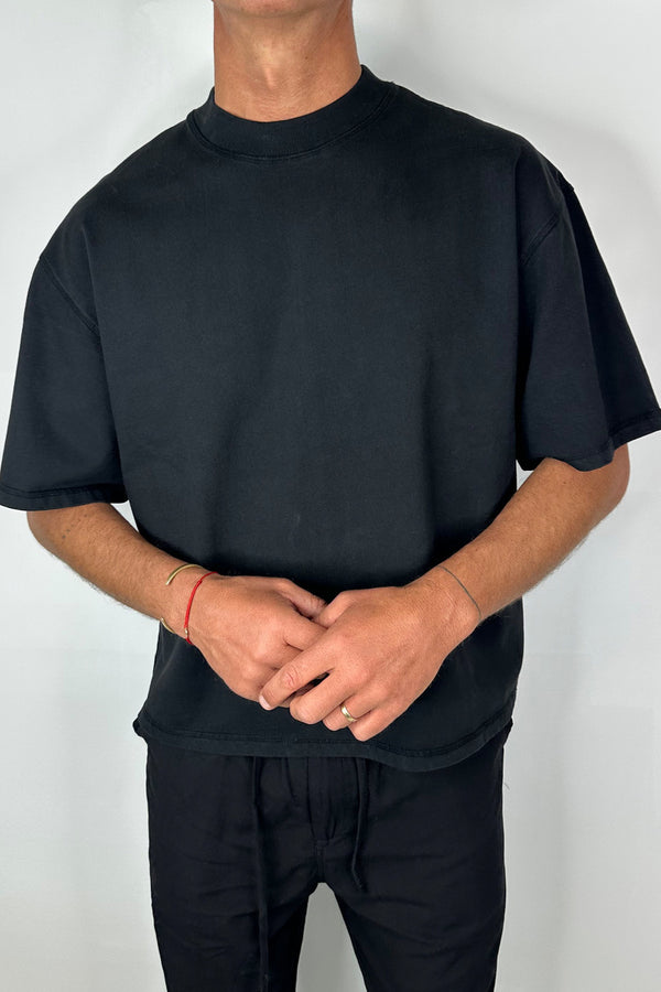 Raw Hem Crew Neck Tee Black