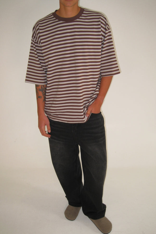 Lesley Stripe Crew Tee Choc