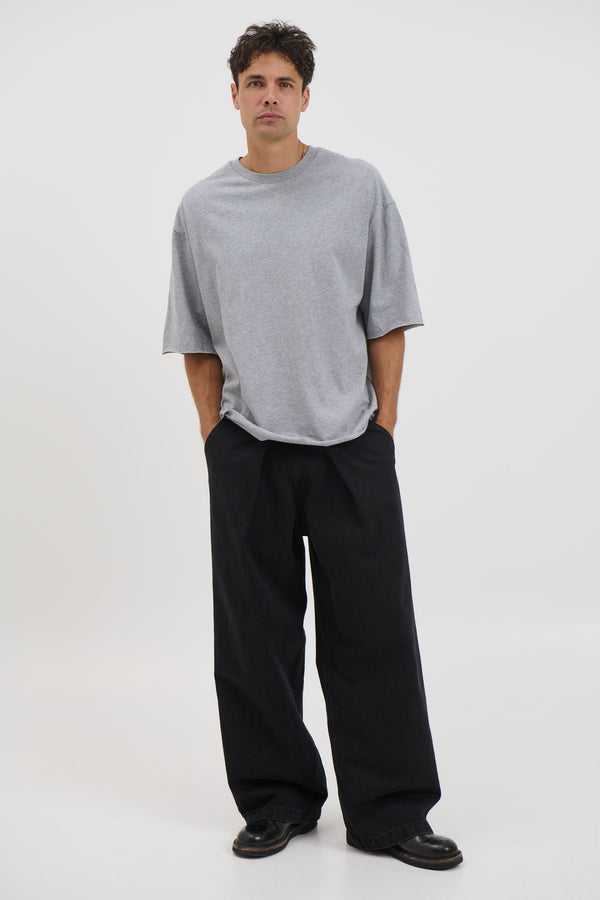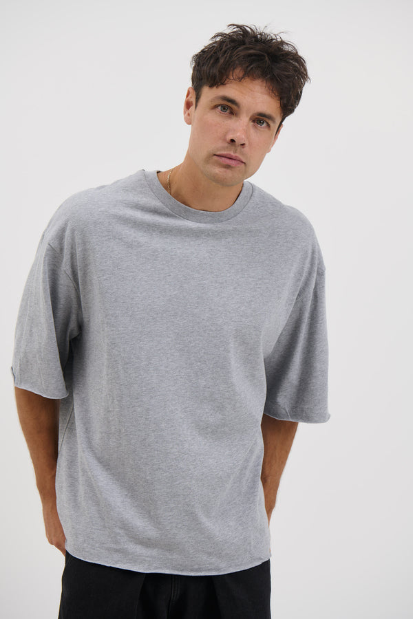 Raw Hem Crew Neck Tee Grey Marle