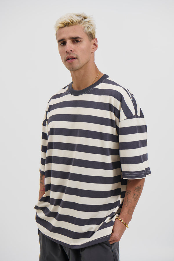 Midweight Signature Tee Grey Stripe