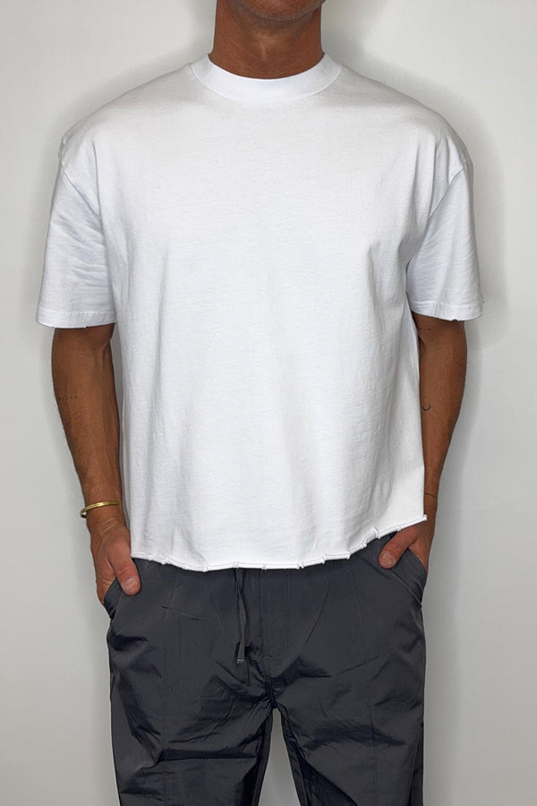 Raw Crop Distress Tee White