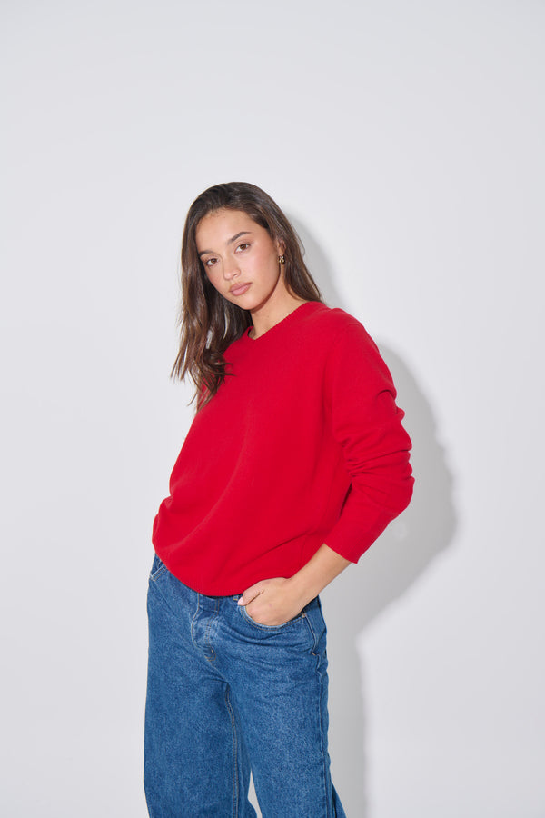 Billie V Neck Sweater Cherry Red - FINAL SALE